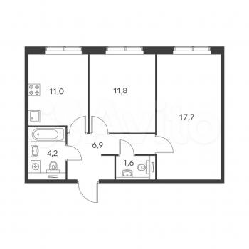 2-к. квартира, 53 м², 6/17 эт., без комиссии