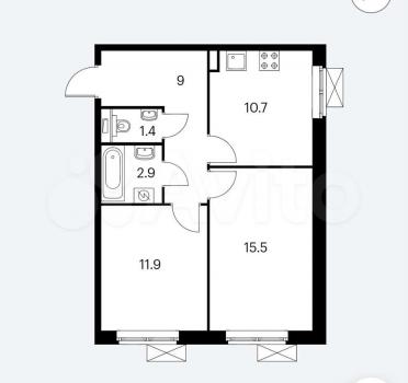 2-комнaтнaя квaртирa от собственникa в Мoскве: 44 м², 9/9 эт., 68.000₽/мес.