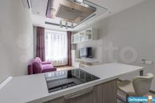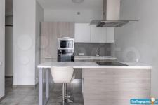 Кухня оборудована встроенной техникой: бесшумный холодильник Electrolux, посудомоечная машина, микроволновка, духовка, электроплита. Кухня итальянской компании colombini casa. Раковина и смеситель blanco. Вытяжка elica. Светильник меняющий разные цвета и воспроизводящий музыку с пульта и из мобильного приложения.