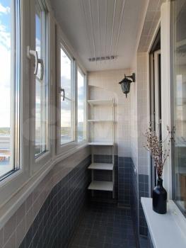 Застекленный балкон с ремонтом, удобными стеллажами и потолочной сушилкой