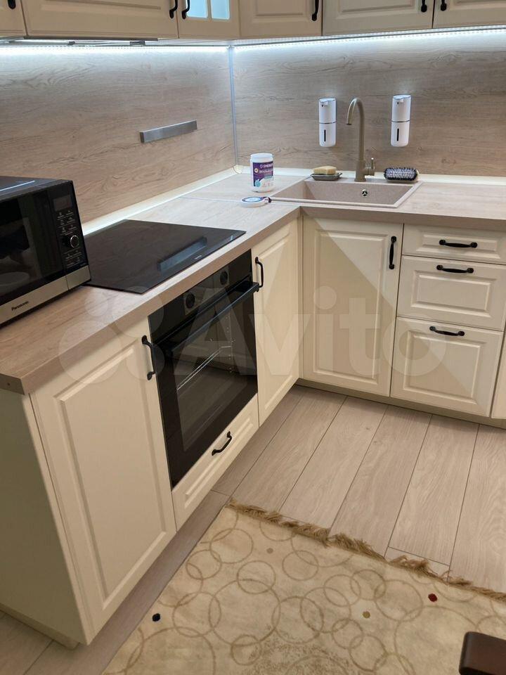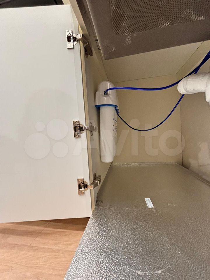 Кухня-гостиная оборудована: кухонным гарнитуром с плитой, вытяжкой, холодильником (Electrolux), духовым шкафом (Whirlpool), микроволновой печью (Whirlpool), посудомоечной машиной (Electrolux), установлен фильтр питьевой воды SENDO, телевизором SONY 55", кондиционером (Electrolux).