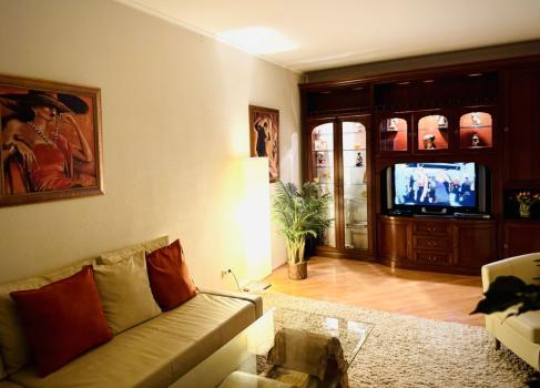 В гостиной большой раздвигающий стол на 6 человек, диван-кровать с матрасом для сна еще 2-х человек