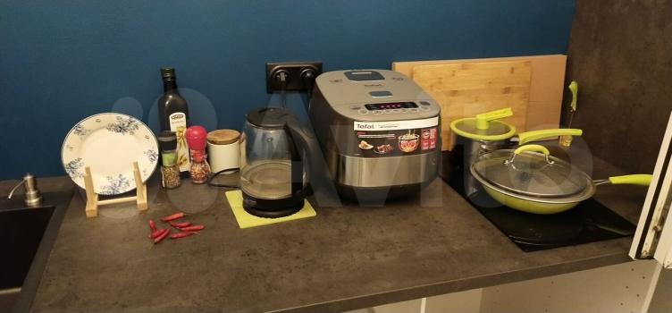 Кухня (встроенная техника), микроволновая печь, чайник + гостиная(телевизор), спальня (меблированная), детская/кабинет. Два санузла. Проведена генеральная уборка.
