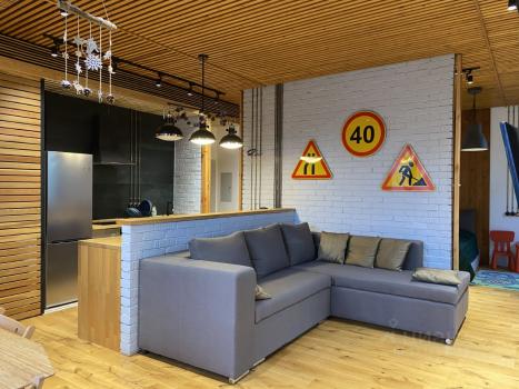 Дизайнерская квартира в стиле лофт с отделкой из экологичных материалов: паркет дуб, стеновые панели...
