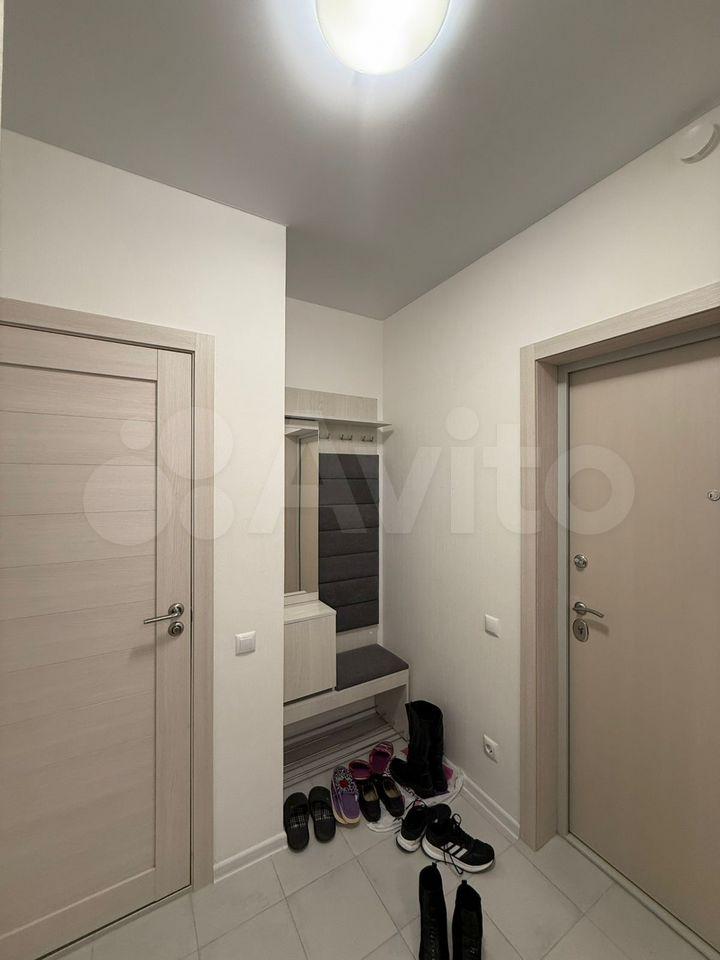 В прихожей шкафы для верхней одежды и вместительный шкаф для хранения обуви, теплые полы, смарт-домофон.