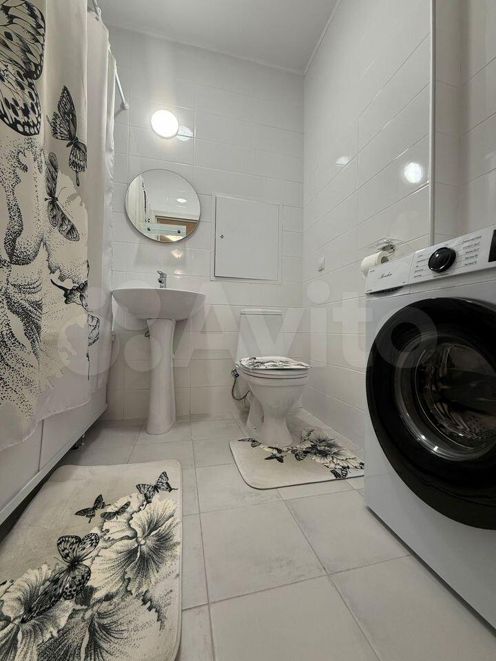 Комфортабельный санузел (более 5м2), оборудован XL душевой системой, накопительным бойлером, стиральной машиной, косметическим зеркалом с подсветкой, теплыми полами и стильной мебелью.