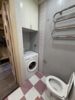 Кухня оборудована встроенным холодильником, посудомоечной машиной, духовым шкафом, варочной панелью, вытяжкой, микроволновкой, есть электрический чайник, стиральная машина. В спальне кровать в подъемным механизмом, хороший ортопедический матрас. В гостиной смарт-ТВ, большой удобный раскладной диван, рабочая зона.