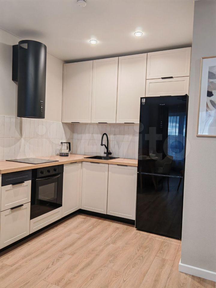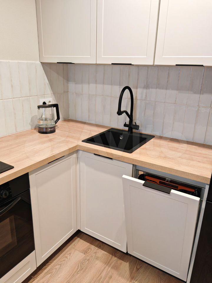 На кухне: индукционная плита, духовка, микроволновка, смеситель для фильтра, вытяжка, посудомоечная машина, холодильник