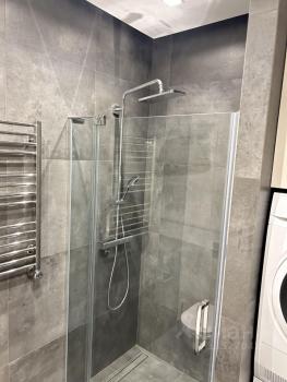 Ремонт выполнен из очень качественных матеалов. Стены краска литл Грин, на полу инженерная доска и керамогранит , теплый пол под керамогранитом, много сценариев освещения, встроенная мебель ( много мест хранения).