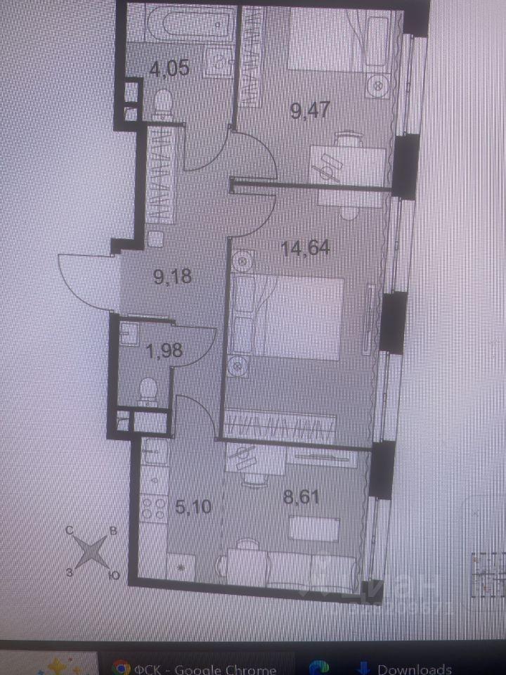 2-к. квартира, 51 м², 4/33 эт., от собственника