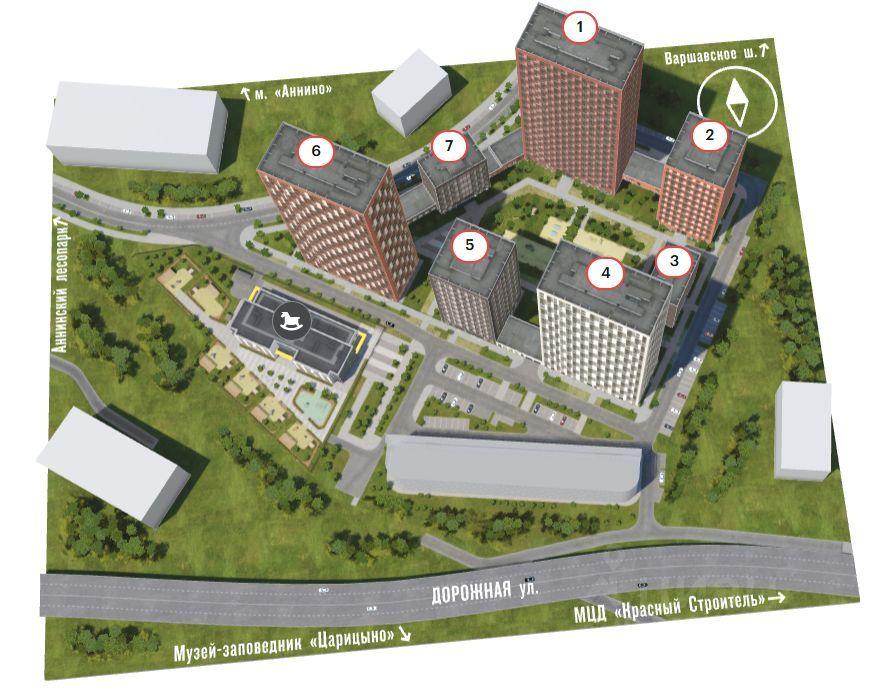 + дом расположен в зелёной зоне: непосредственно у больших парков Аршиновский и Сосенки, в паре остановок находится Дендропарк, а до усадьбы-музея Царицыно 15 минут пешком. Зелёный и тихий район, но с развитой инфраструктурой.