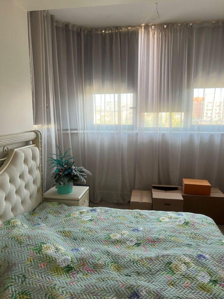 Кровать с подъемным механизмом 160х200, шкаф, тумбы, регулируемый свет и подсветка штор. Из спальни выход на застекленную лоджию с панорамными окнами.
