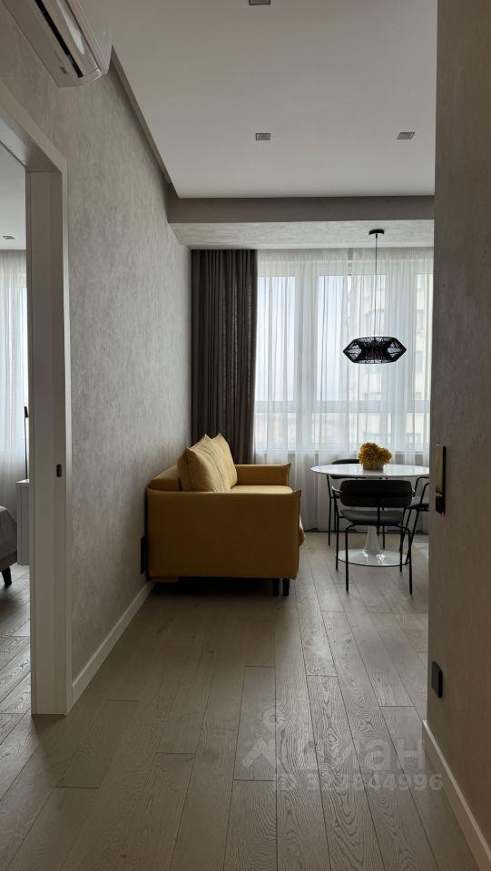 Отделка в современном стиле в светлых нейтральных тонах. Теплые полы во всем апартаменте. Отопление через напольные конвекторы, два кондиционера. Окна во внутренний двор комплекса.