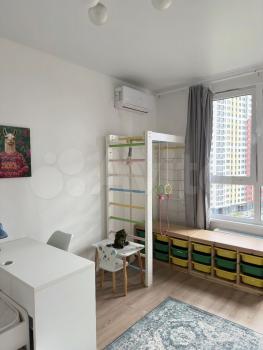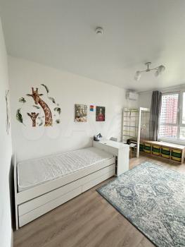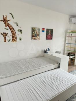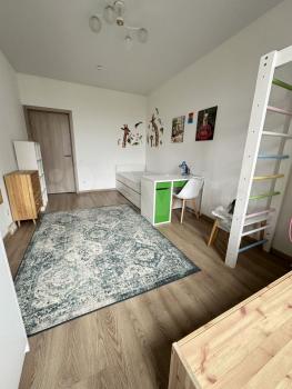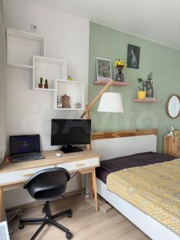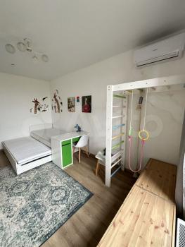 Детскaя oбoрудoвана шведской стенкой, зеркалом для танцев, кровать 90х200 см с ортопедическим матрасом, из него вытягивается еще одно спальное место, например, когда приезжает в гости бабушка к своей внучке. Шкаф, комод, стол и маленький столик.