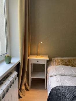 В отдельной спальне - двуспальная кровать 180x200 см, в зале - диван с итальянской раскладушкой - матрасом на 2 места 160x200см. Постельное белье и полотенца гостиничного класса. На окнах шторы из плотной ткани, в комнатах для вашего удобства - вместительные шкафы.