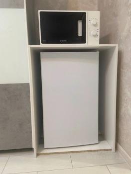 Имеется бытовая техника: электрическая стеклокерамическая плита, духовка, микроволновка, электрический чайник, холодильник, посудомоечная машина, стиральная машина.