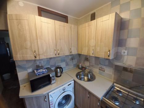 В квартире кухонный гарнитур, газовая плита и водонагреватель, шторы блэкаут. Есть холодильник, стир...