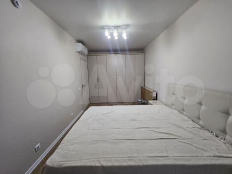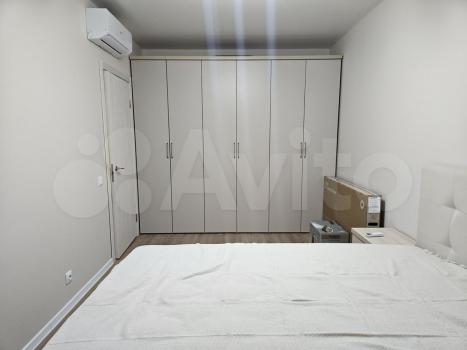 В спальне - большой шкафа для одежды, двухспальная кровать, 2 тумбы. телевизор смарт с Алисой. кондиционер.