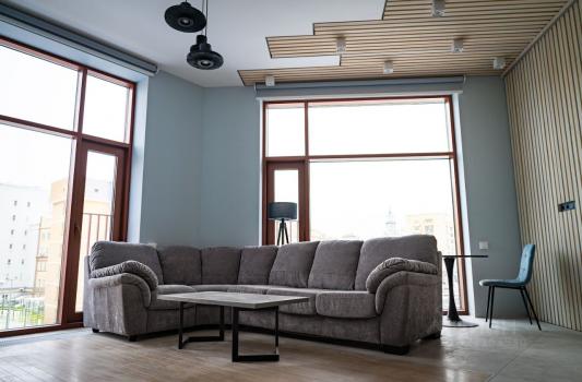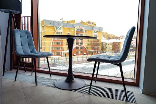 Большие панорамные окна наполняют пространство светом весь день и выходят на две стороны света. Два огромных окна в гостиной из которых видно две сталинские высотки и уникальное освещение, изысканный интерьер из натурального дерева и камня подарят Вам незабываемые впечатления от пребывания в апартаментах.