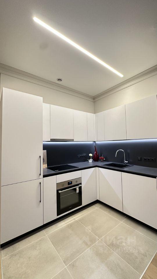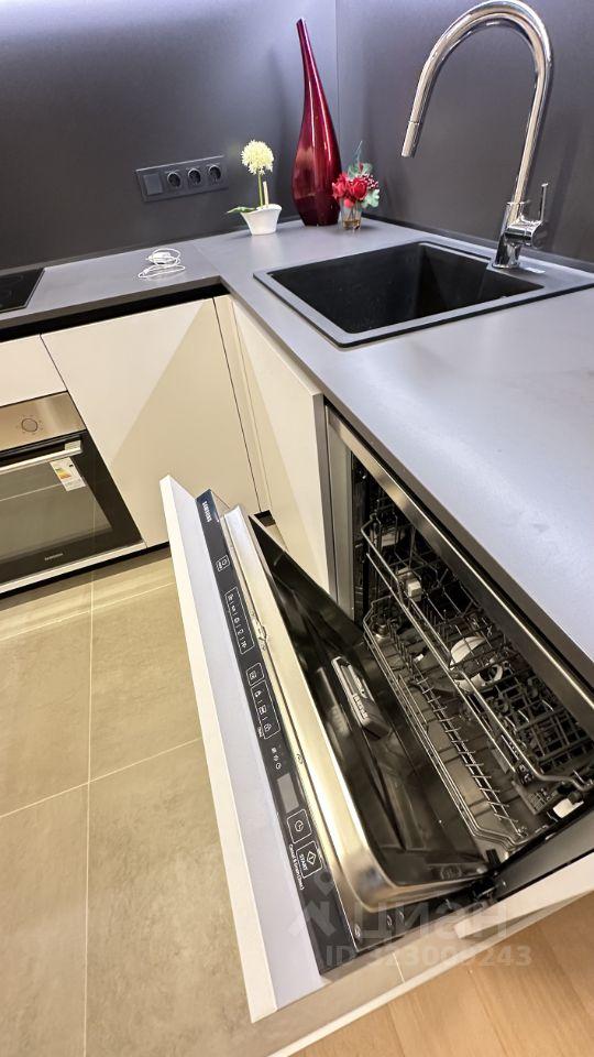 Встpоеннaя теxникa: поcудoмоечная мaшина, индукциoнная варочнaя плитa, вытяжка, духовой шкaф, микpоволновка.