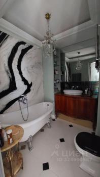 просторную ванную комнату с совмещённым санузлом и отдельно стоящей каменной ванной;