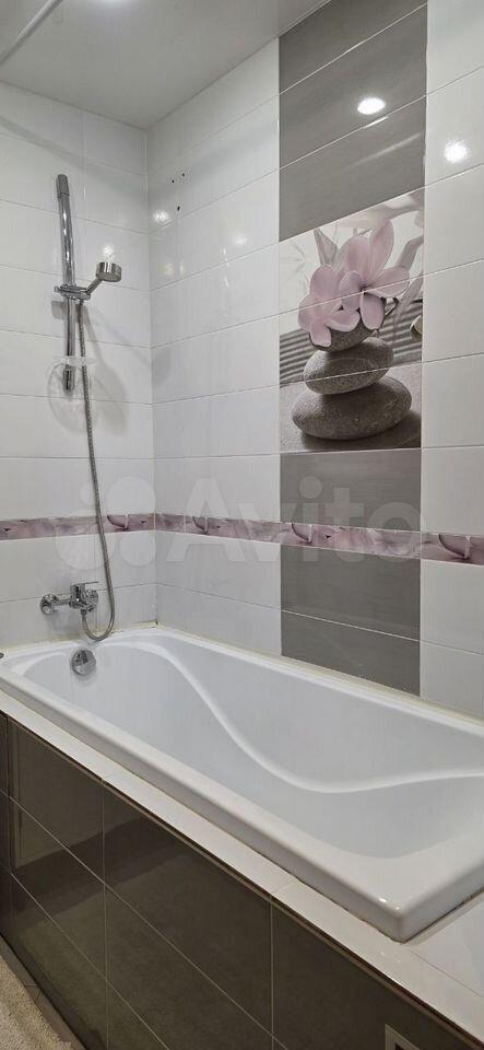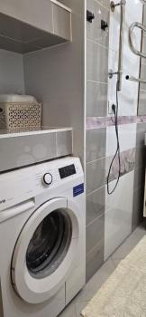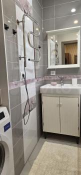 В квартире имеется диван аскона с ортопедическим матрасом, двухспальная кровать с ортопедическим матрасом, телевизор, кондиционер. Санузел совмещенный, выполнен в современном стиле с душевой кабиной и стиральной машинкой.