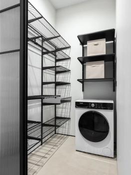 При входе огромная гардеробная с шелфсистемой