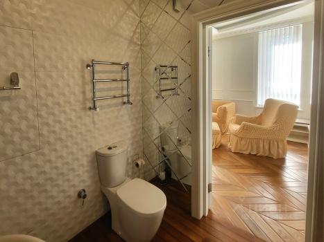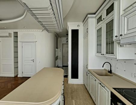 Мебелирована, готова для комфортного проживания. В наличии посудомоечная и стиральная машины, кинопроектор, WiFi роутер, кондиционеры в комнатах, пылесос Дайсон. Проложен теплый пол, штучный паркет и натуральный камень. Санузел совмещен с ванной комнатой, имеется гардеробная-кабинет.