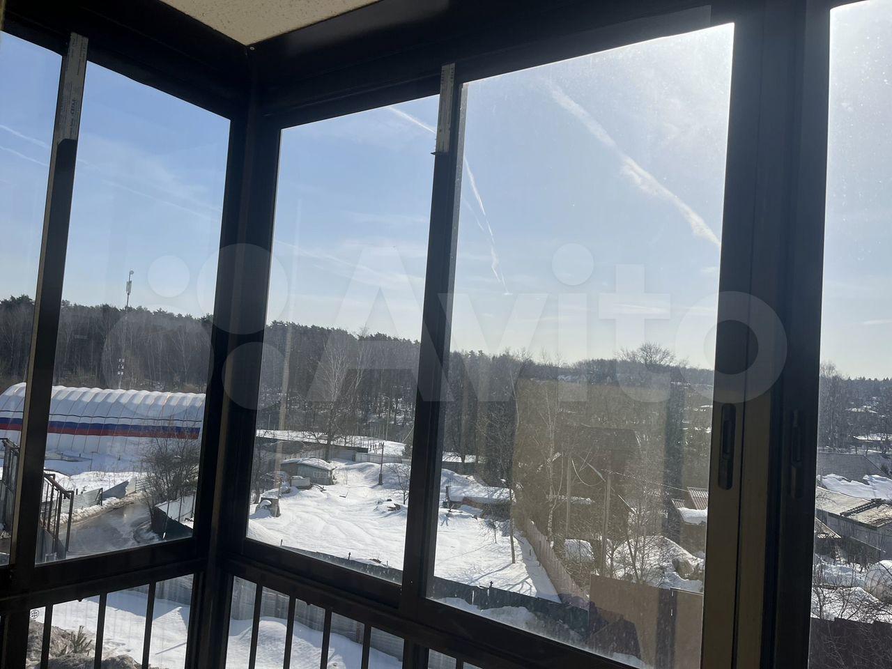 Лоджия застеклена, с видом на городскую застройку. Открытая парковка во дворе.