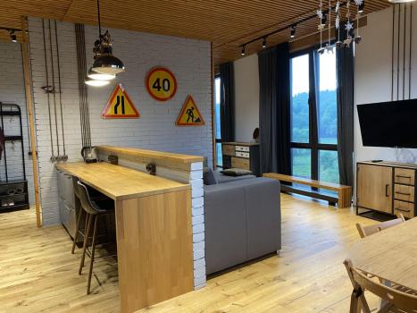 Дизайнерская квартира в стиле лофт с отделкой из экологичных материалов: паркет дуб, стеновые панели...