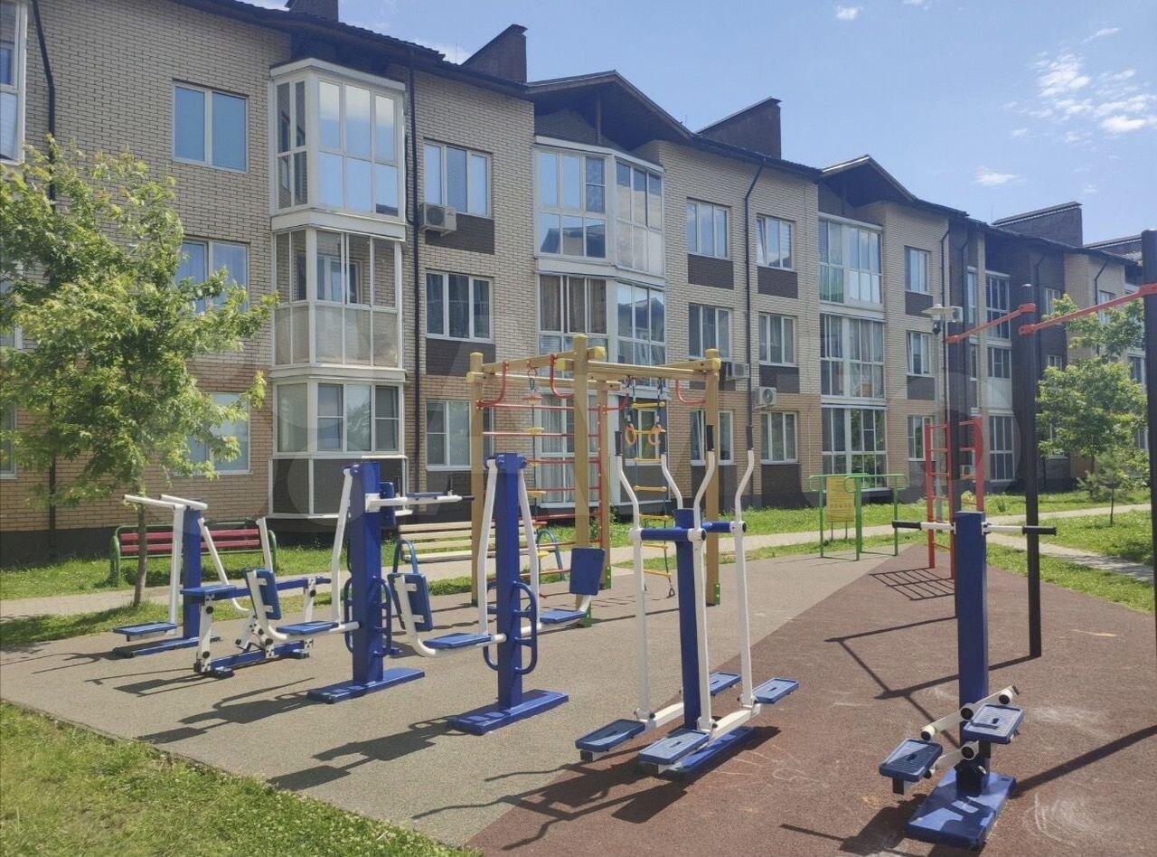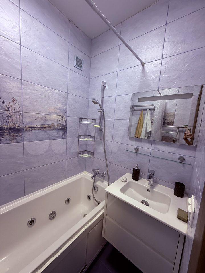 В квартире раздельный санузел, оснащенный современной сантехникой и стиральной машиной. Окна выходят на тихий двор, где расположена детская площадка, что делает жилье подходящим для семей с детьми.