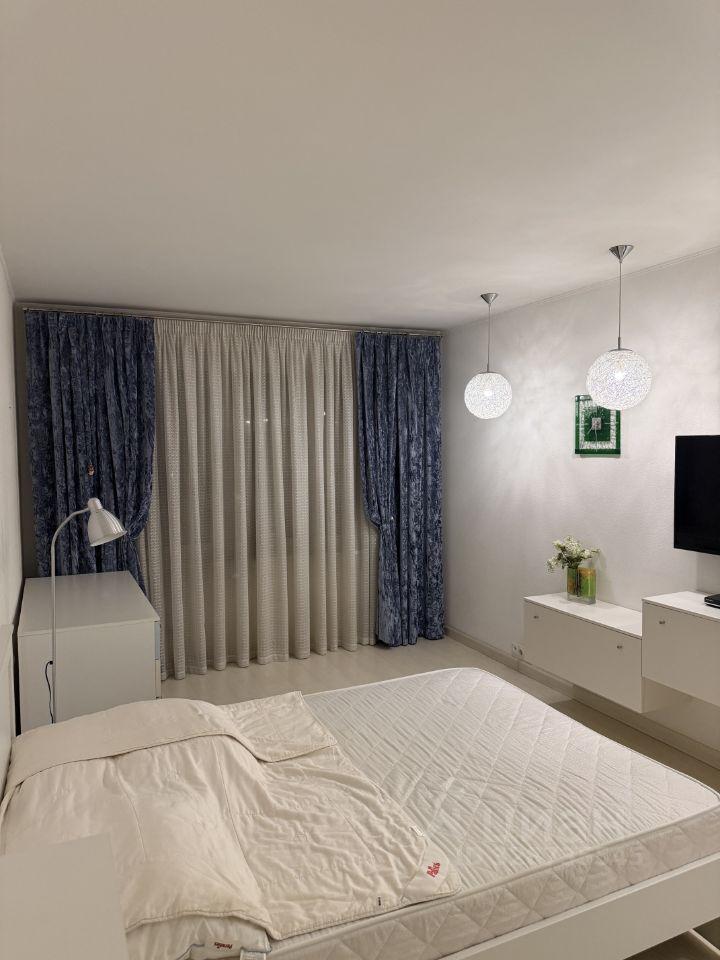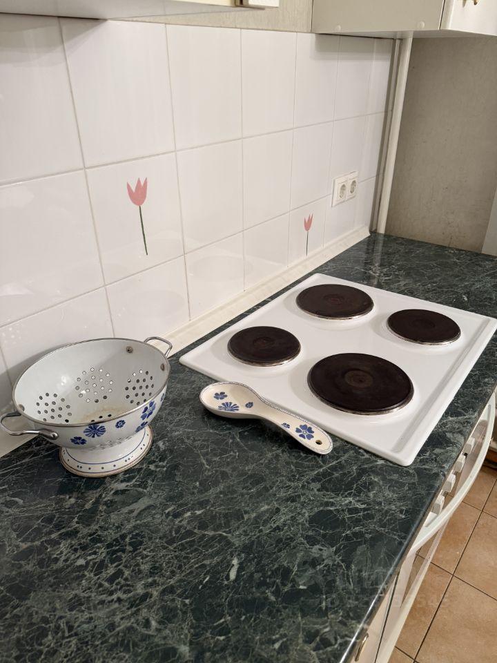 В квартире хороший косметический ремонт. Просторные и светлые комнаты, высота потолков 2.64 метра. Обе комнаты меблированы, два телевизора, большие шкафы для одежды. Кухня оборудована плитой, духовкой, имеется микроволновка. Санузел совмещенный.