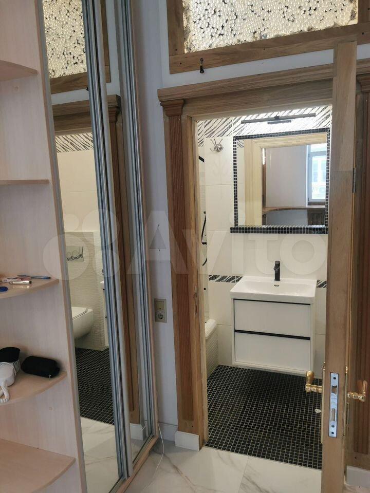 Планировка: большой коридор, из него совмещенный санузел ( фото еще до окончания ремонта, сейчас готов). Далее попадаете в гостиную с кухней в отдельной нише( без окна) и в небольшую спальню., Дом без лифта, 3 этаж.