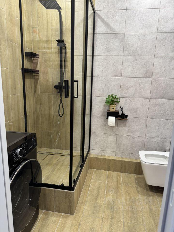Кухня оборудована современной техникой, включая холодильник, плиту и посудомоечную машину. Ванная комната совмещенная, оформлена в светлых тонах, оснащена ванной и стиральной машиной.