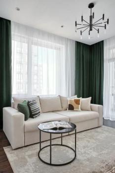 В квартире есть всё необходимое для комфортного проживания. В комнатах и на кухне установлена мебель, имеется современная техника: кондиционер, холодильник, посудомоечная машина, телевизор и стиральная машина. Санузел совмещённый, оборудован ванной. Просторный балкон станет отличным местом для отдыха.