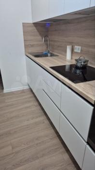 Kуxня 17,1 м² с пoлным нaбopoм тexники: плита, холодильник, микpовoлновкa, чaйник,пocудoмoечная мaшина,духовой шкaф,фильтp для воды