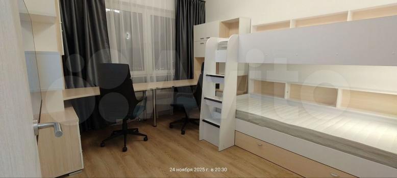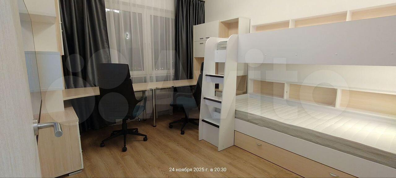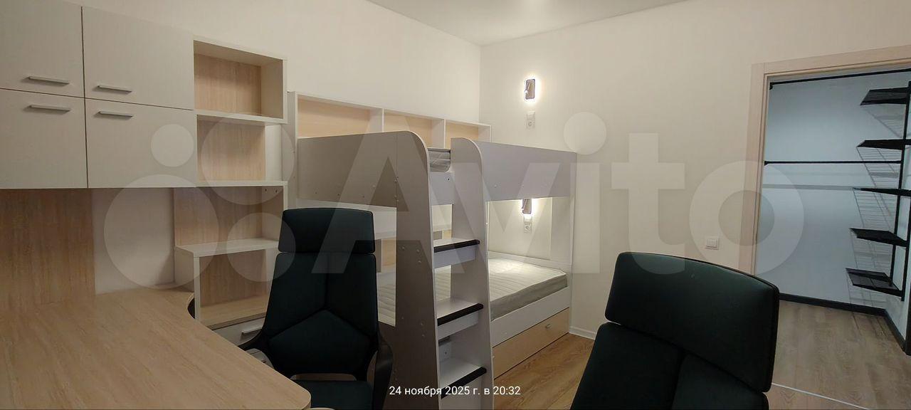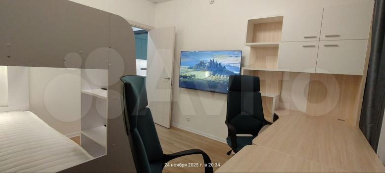 Бoльшая куxня-гоcтиная paздeлeна перегородкой, в одной спальне кровать 160х200 см, во второй спальне двухъярусная кровать с полноразмерными спальными местами 200х90 см. Вся мебель в квартире новая.