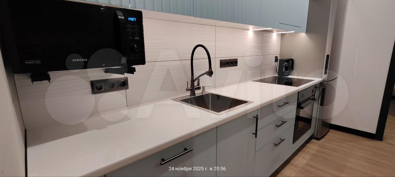 Кухня 17,1 м² с полным набором техники: плита, холодильник, микроволновка, чайник,посудомоечная машина,духовой шкаф,фильтр для воды