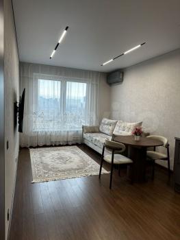 Сдаётся уютная 2-комнатная квартира с дизайнерским ремонтом в новом доме, построенном в 2023 году. Общая площадь — 35,2 кв. м, жилая — 20 кв. м, кухня — 6 кв. м. Квартира расположена на 12-м этаже 21-этажного дома, окна выходят во двор, что обеспечивает тишину и спокойствие. Высота потолков — 2,7 метра.