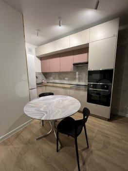 - просторная кухня-гостиная с обеденной зоной, кондиционером, мягким диваном, телевизором, журнальным столиком. Кухня со встроенной техникой Haier - варочная панель, духовой шкаф, микроволновая печь, холодильник, посудомоечная машина и вся необходимая посуда (кастрюли, сковорода, ложки, вилки и тд), пылесос; Кухня функциональная с качественной фурнитурой Blum.