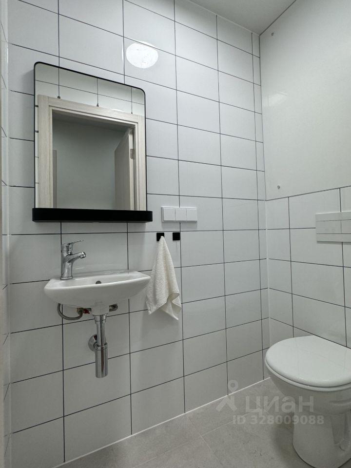 В санузле столешница из искусственного камня, зеркало с регулируемой подсветкой.