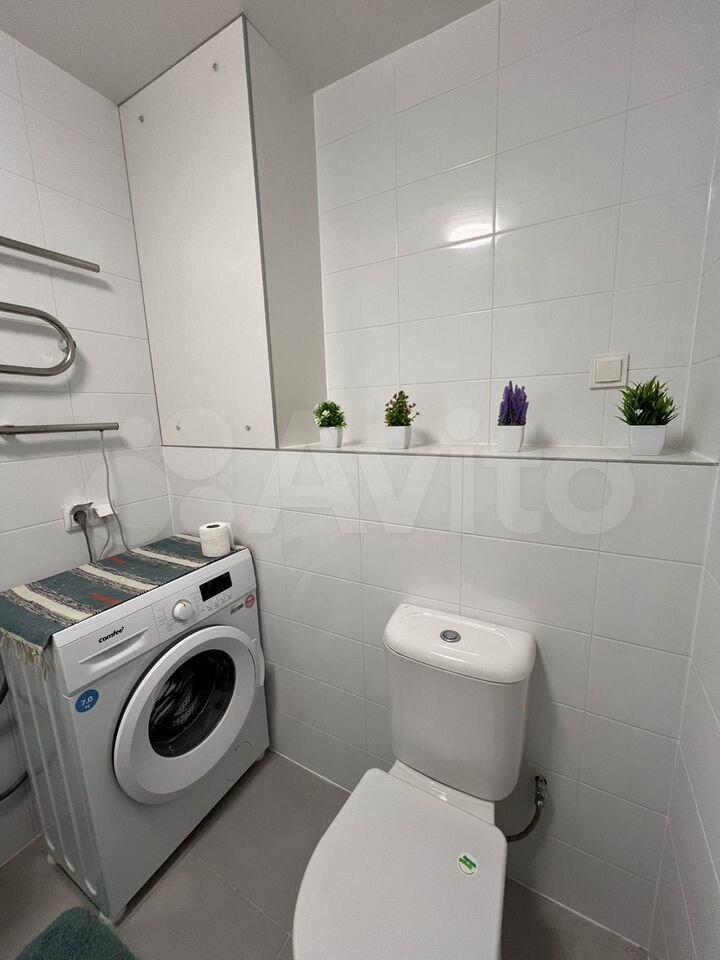 Ванная комната совмещенная, оснащена современной сантехникой и стиральной машиной. В доме есть консьерж, грузовые и пассажирские лифты. Во дворе закрытая территория с подземной парковкой и детской площадкой.