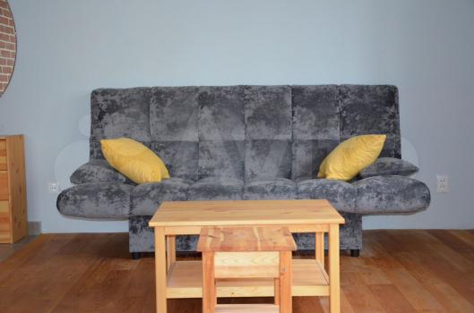 Две изолированные комнаты. В спальне двух-местная кровать, встроенная зона хранения вещей. В гостиной мягкая мебель, журнальный стол, зона хранения.
