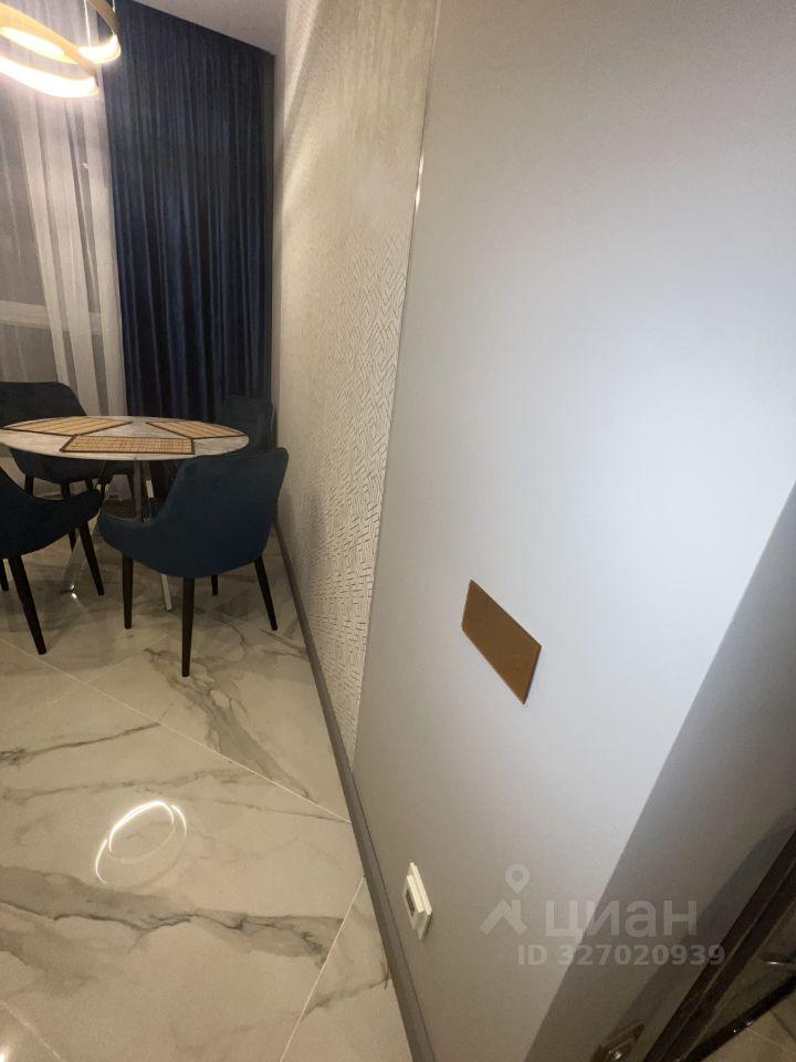 Планировка: просторная кухня-гостиная и изолированная спальня, две гардеробные. Интерьер выполнен в спокойных, гармоничных тонах.
