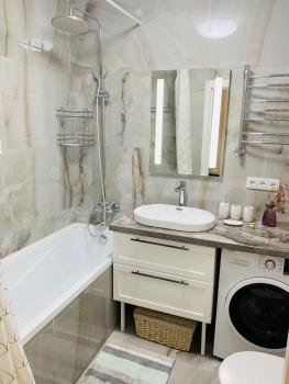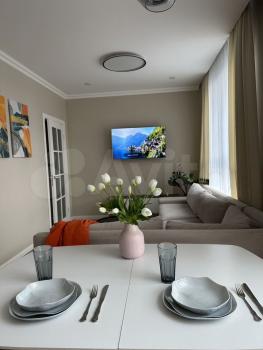 ЦЕНА 70000 ₽ ДЕЙСТВИТЕЛЬНА ДО 17 АПРЕЛЯ (после цена будет 77000₽ ). Сдается впервые уютная евродвушка с новой мебелью и техникой (полностью мебелирована, фото дозагружу позднее). Изолированная спальня с большой двухместной кроватью 160*200 с мягким изголовьем, ортопедический матрас Аскона для Вашего спокойного и комфортного сна. На кухне имеется вся техника,необходимая для комфортного проживания: полноценная индукционная варочная поверхность на 4 конфорки,духовой шкаф с конвекцией, грилем и таймером, микроволновка, электрический чайник с различными режимами подогрева воды,вместительный холодильник. Круглый раскладывающийся стол на кухне просто создан для теплых семейных ужинов в кругу близких,где всегда всем хватит места. В зоне гостиной находится двухместный ортопедический диван (спальное место 140*200), вместительная тумба и телевизор приятного размера диагональю 50 с отличными характеристиками - подойдет как для просмотра фильмов в 4к (есть ИИ-масштабирование до 4к любого фильма), так и для динамических игр на плойке-геймеры поймут. В ванной комнате и коридоре находятся зеркала с подсветкой и регулировкой яркости для Вашего безупречного вида,также их можно использовать как приятную приглушенную фоновую подсветку помещений. В коридоре и спальне имеются вместительные шкафы.