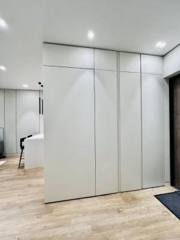 - изолированную спальню со шкафом, зеркало, прикроватной тумбой, рабочая зона кабинета, туалетный стол и пуф, зоной ТВ, вместительным подвесным комодом, двуспальная кровать с подъёмным механизмом;