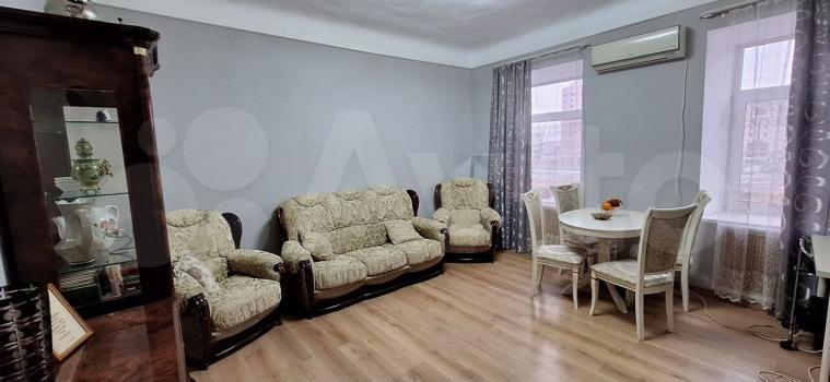 В доме толстые стены, из-за чего квартира очень тёплая. Расположена на 4 этаже, имеется пассажирский лифт. В квартире высокие потолки, большая жилая площадь – 44 кв.м., выполнен качественный ремонт, обставлена итальянской мебелью, и укомплектована всей необходимой бытовой техникой. Санузел раздельный.