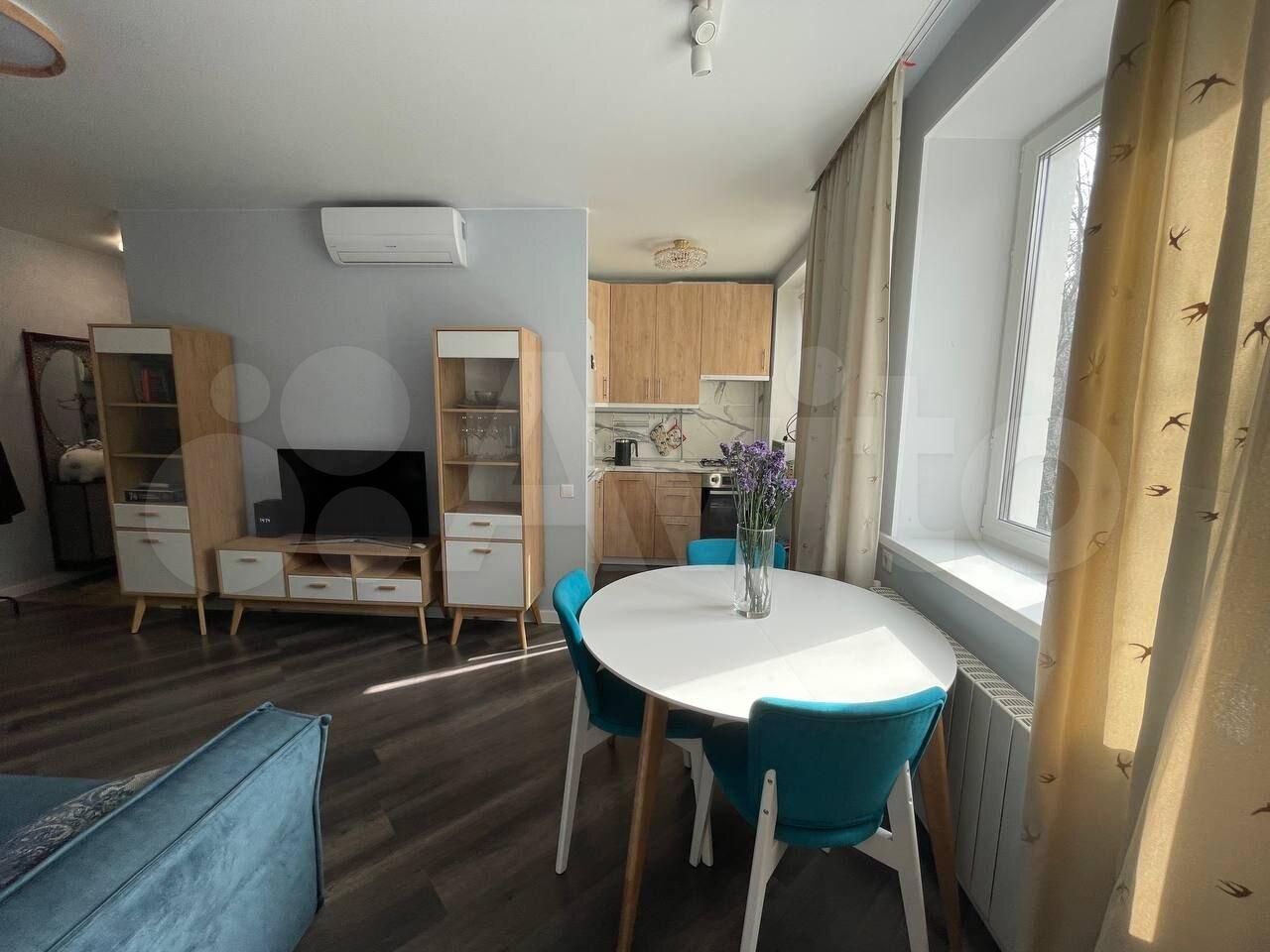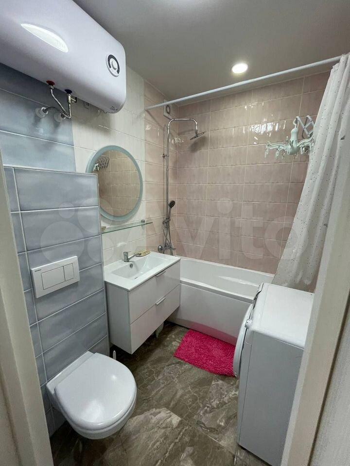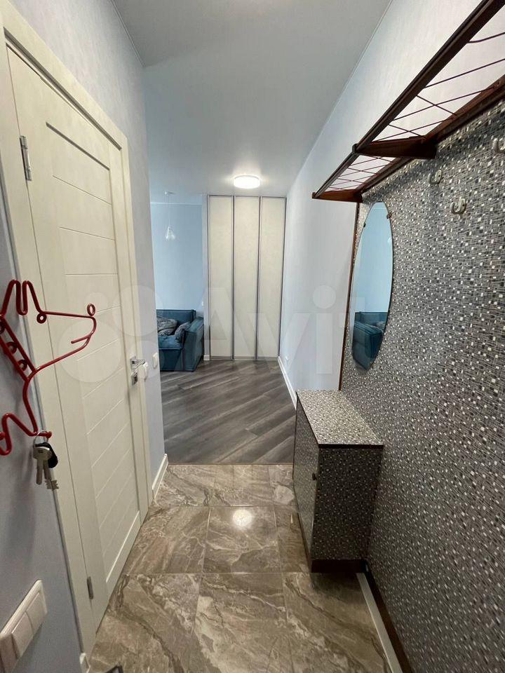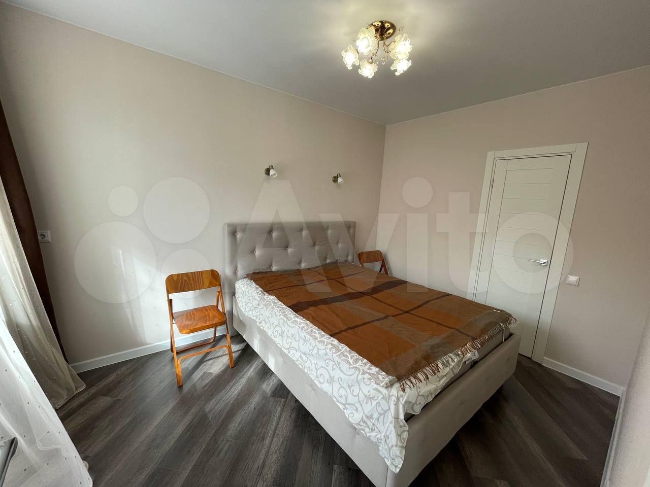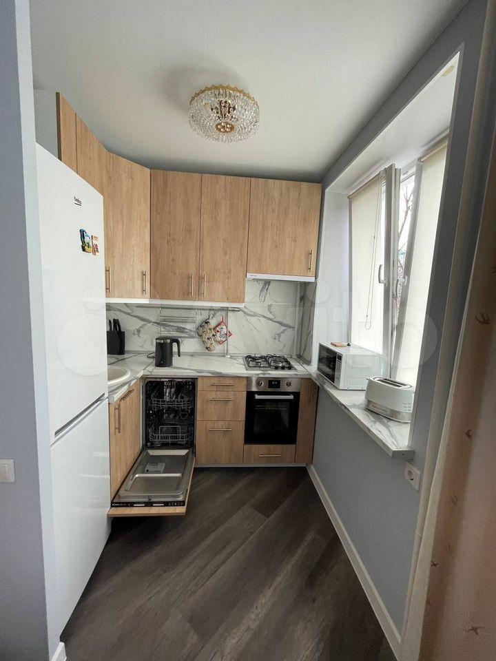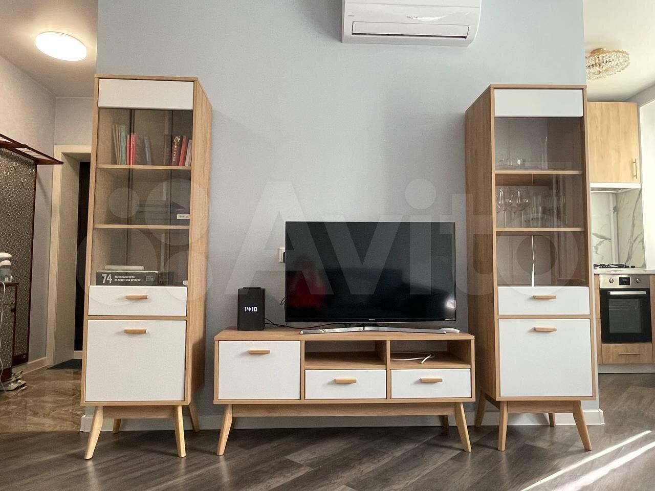 Квартира с новым дизайнерским ремонтом, имеется всё необходимое для проживания. Кухня-гостиная, спальня, коридор, санузел изолированы друг от друга. В спальне двухспальная кровать, матрас 1800. В гостиной раскладывающийся диван на две персоны. Телевизоры в гостиной и в спальне. Имеются посудомоечная машина, стиральная машина, духовой шкаф, встроенный холодильник, встроенная микроволновка, измельчитель пищевых отходов, варочная поверхность. В санузле душевой уголок и нагреватель воды. Шкаф и комод в прихожей. Большой встроенный шкаф в спальне.