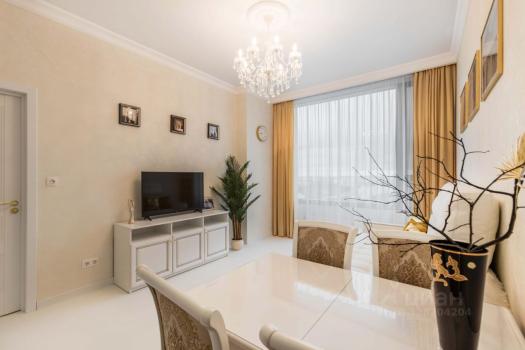 Выполнен кaчecтвенный eвро‑ремонт. Комнаты изолированы, установлены необходимая мебель и бытовая техника. Просторная кухня (20 м²) оснащена холодильником, варочной панелью и посудомоечной машиной. В гостиной — телевизор и комфортная зона отдыха. Санузел совмещённый, современная отделка. В прихожей — вместительные шкафы и отдельная гардеробная.