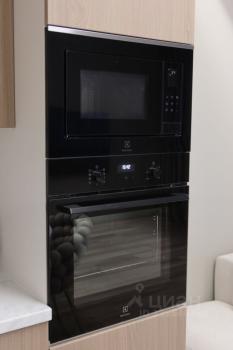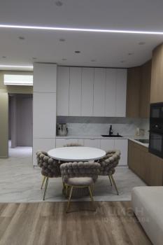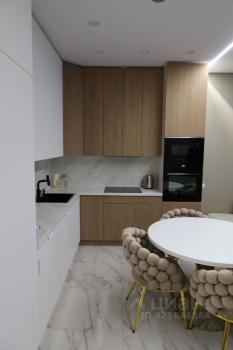 Квартира оборудована кухонным гарнитуром и современной мебелью, выполненной на заказ.
